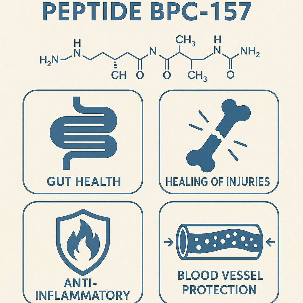 BPC-157, or Body Protection Compound-157, is a synthetic peptide derived from a natural set of amino acids found in human gastric (stomach lining) juice. It consists of 15 amino acids and is naturally associated with protective and regenerative processes in the human body. Its discovery stemmed from research into the stomach lining’s natural ability to resist injury and heal from ulcers, revealing a wide range of therapeutic benefits. BPC-157 is not limited to gastrointestinal health; it demonstrates systemic effects that aid in tissue repair, inflammation reduction, and healing acceleration. Clinical and anecdotal evidence strongly support its efficacy in promoting recovery from injuries and managing chronic conditions.